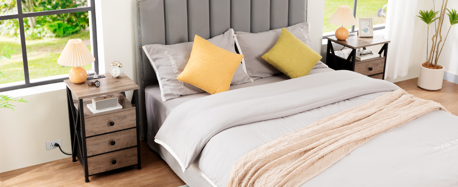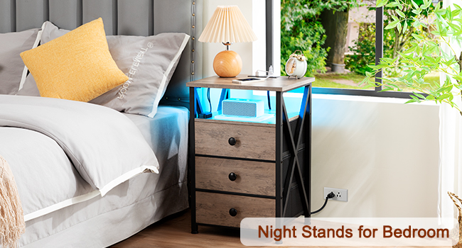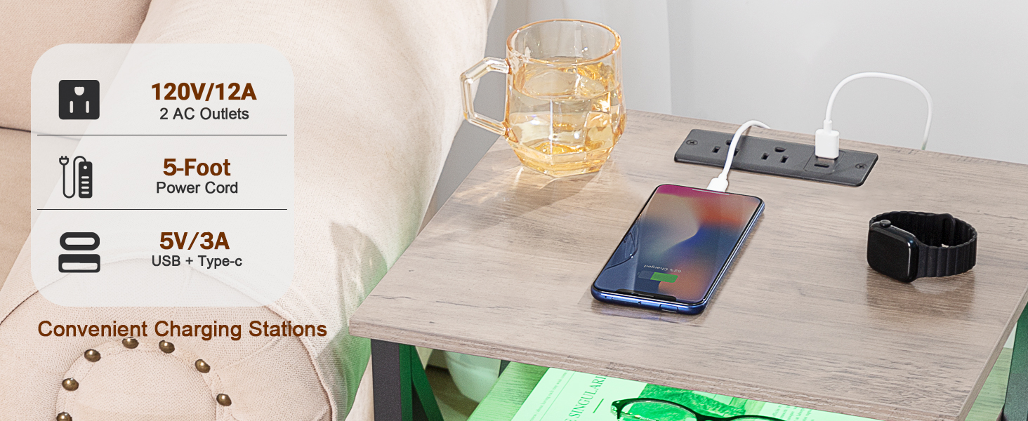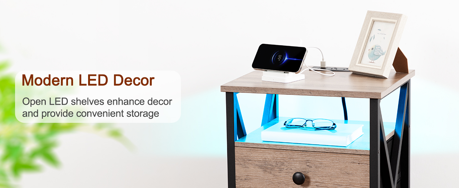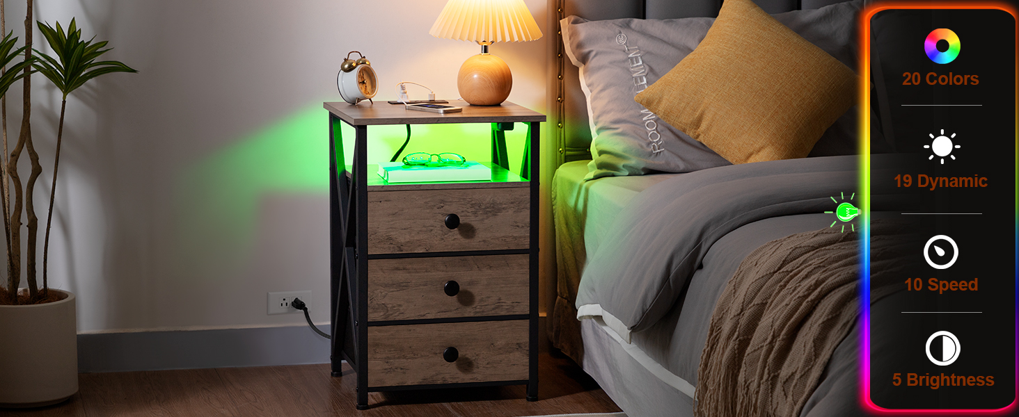 LED night stand feature USB port, Type C charger and 2 AC outlets keep your devices fully powered up at all times