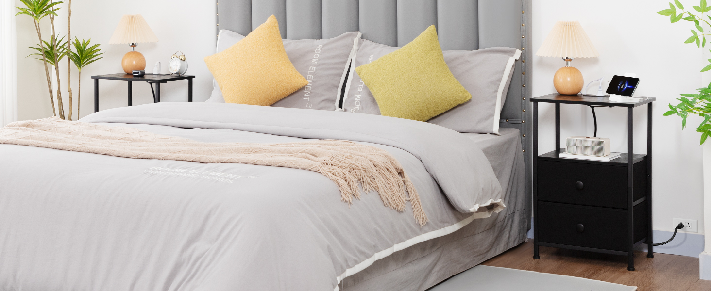 Night stands for bedroom set of 2 feature USB port, Type C charger and 2 AC outlets keep your devices fully powered up at all times