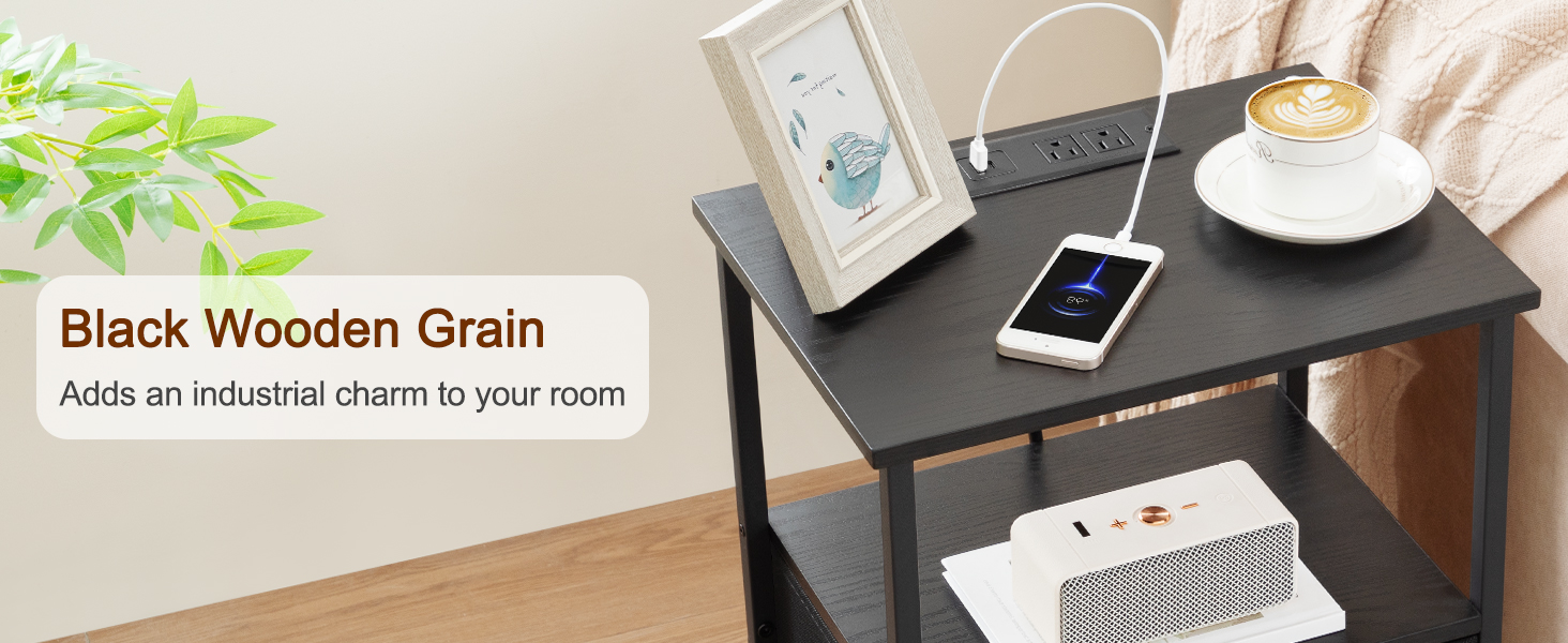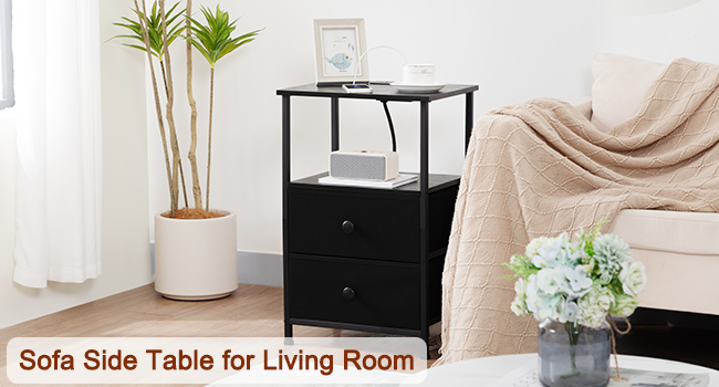 Small Nightstand with Charging Station HETS020BK